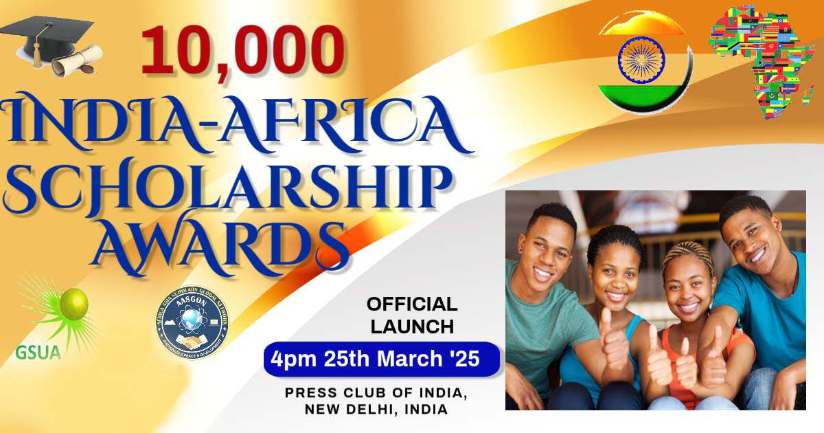 The Indo-African 10,000+ Scholarships Drive is a joint Corporate Social Responsibility (CSR) initiative by AASGON (Africa Asia Scholars Global Network), UK, and Business Press India, Delhi NCR, India. It aims to support the Global South, particularly African Union countries, by offering 100% tuition fee-free scholarships to over 10,000 young nationals.
